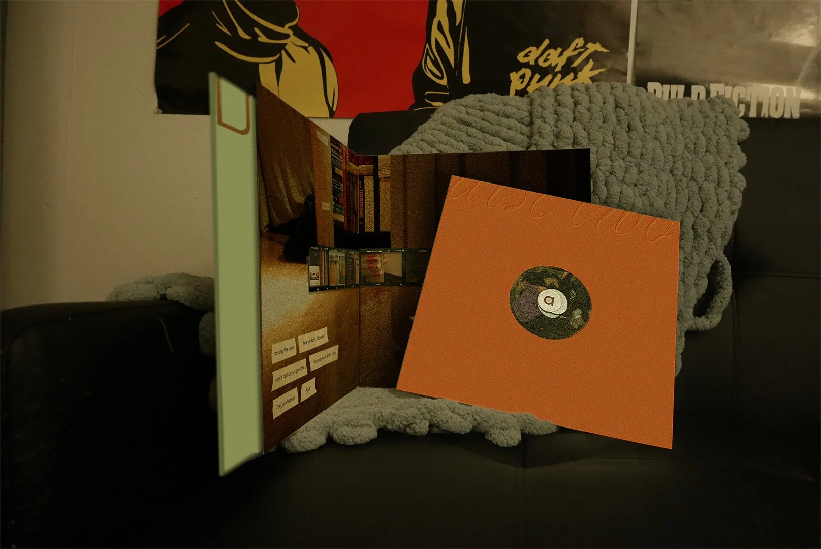 custom mockupsFinding quality gatefold mockup templates that matched the tone of the album was proving to be a challenge, so I shifted directions and created my own. By shooting original photos and leveraging my Photoshop skills to build custom mockups, I was able to place the album design in a more realistic, lived-in context that better reflected the project’s concept and atmosphere.
