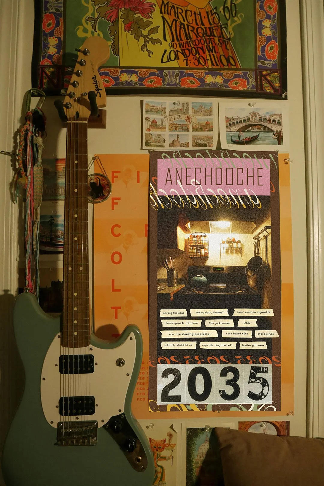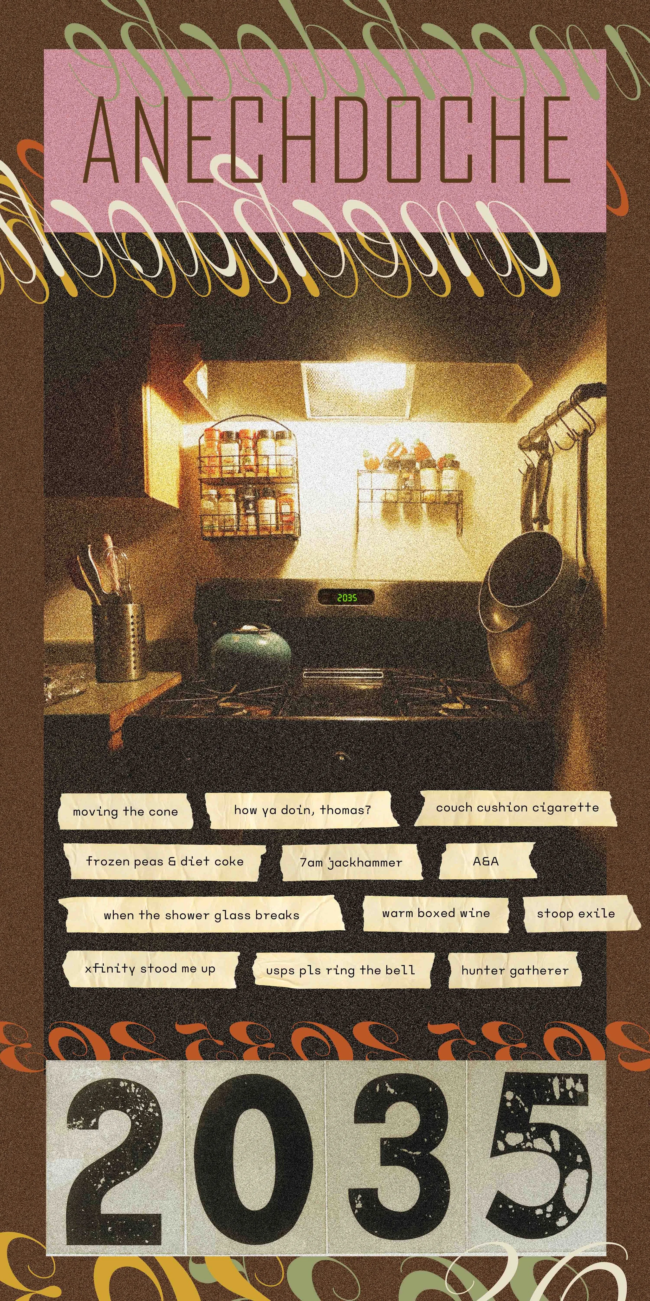 2035 is the debut album of the fictitious band Anecdoche, centered on documenting and preserving the memory of a lived-in space. The project is rooted in observations of my own house, using familiar rooms, objects, and small details as visual anchors for the album’s world.