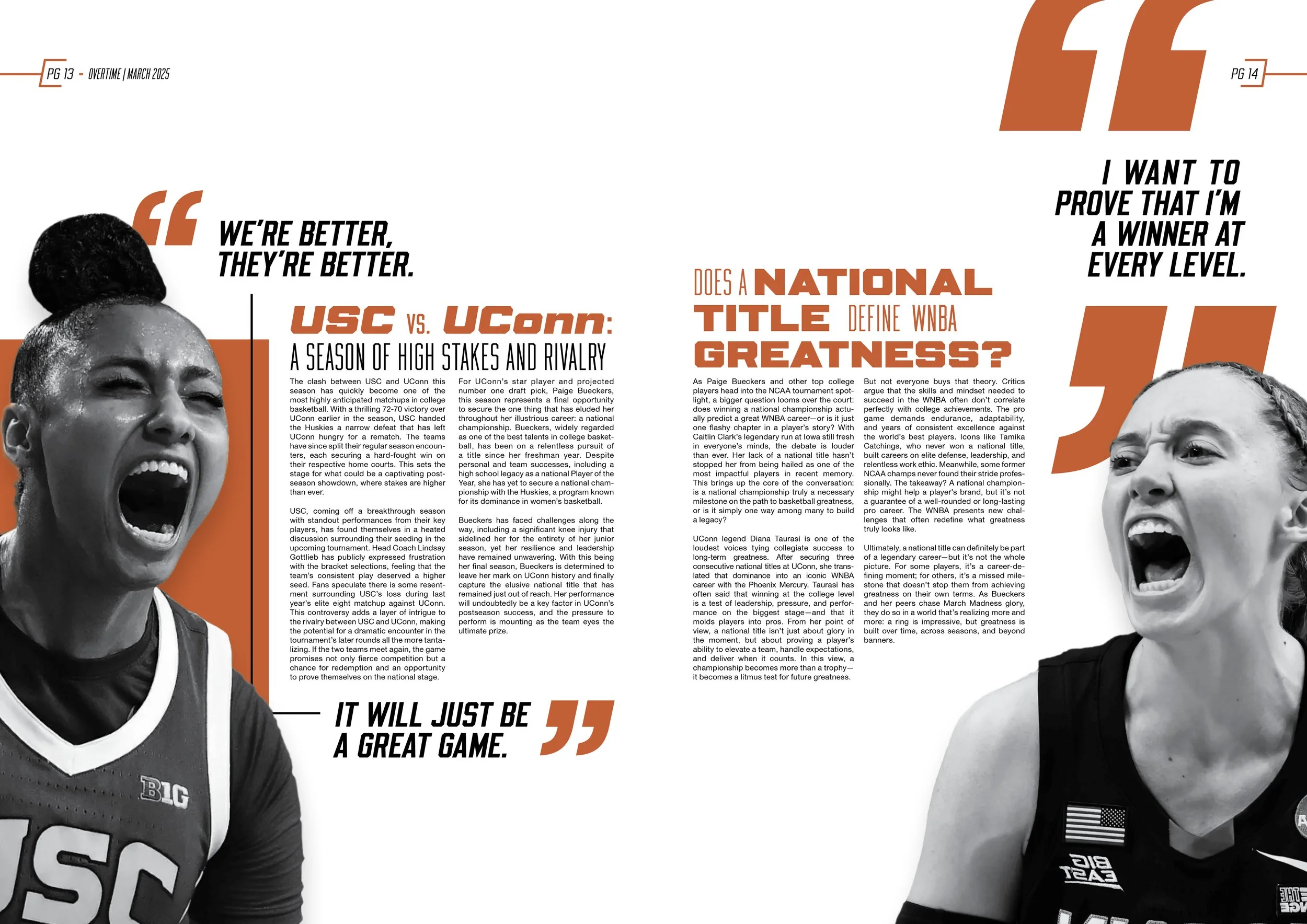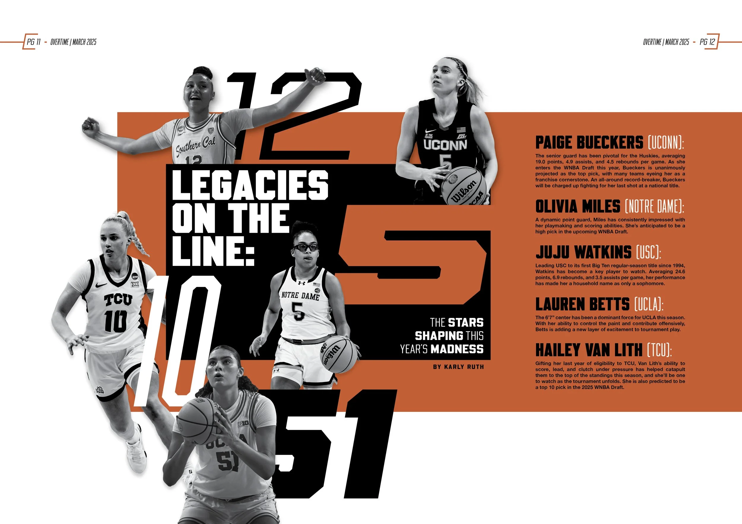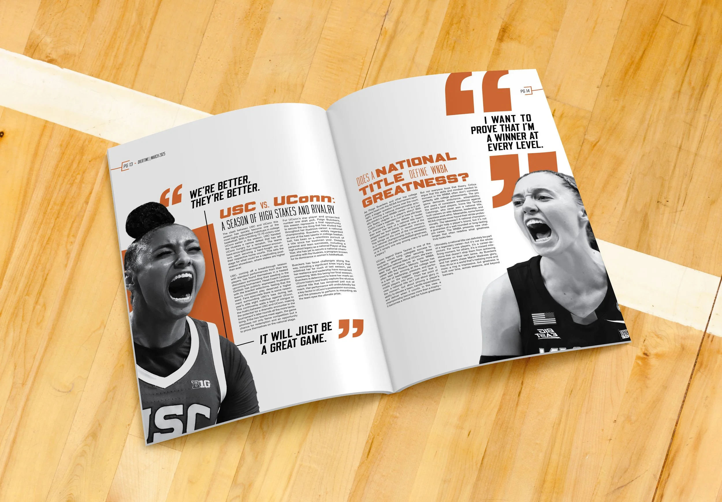 The goal was to create a visually bold, modern magazine experience that treats women’s college basketball as a major sports moment, with high-impact layouts and a strong cover presence.
